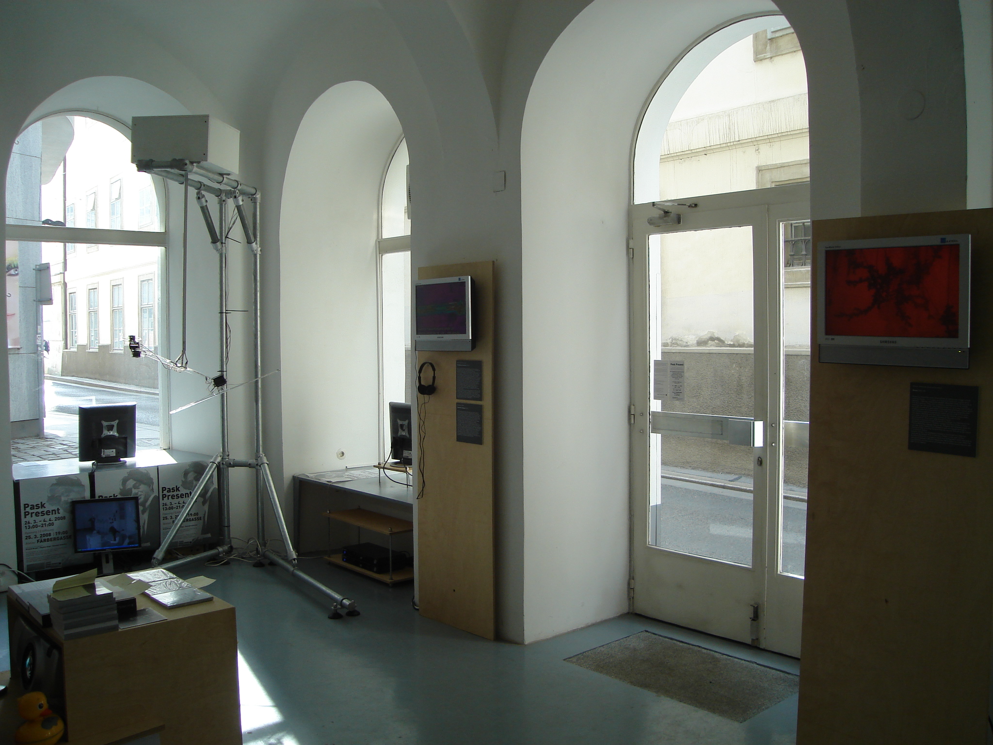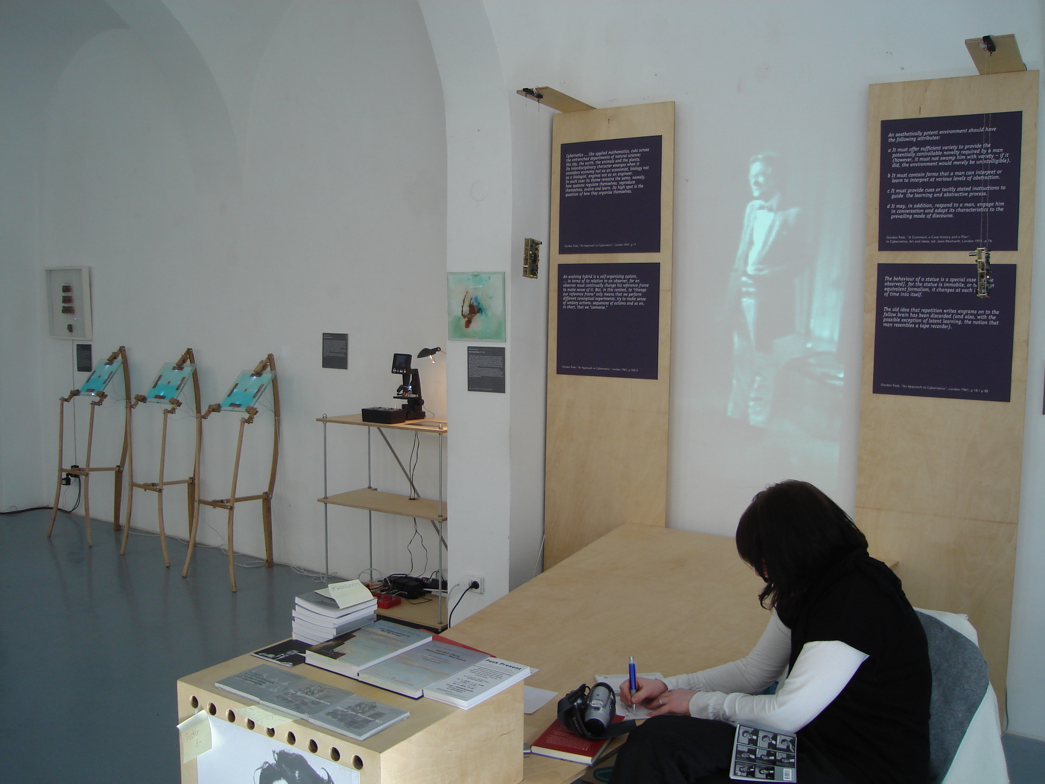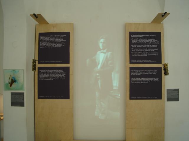 Key quotes by Gordon Pask and video loop of Gordon pacing back and forth